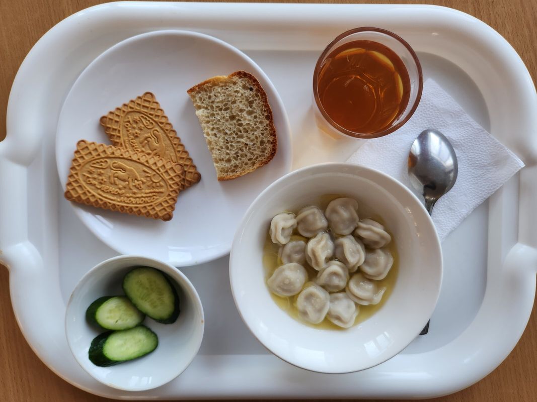 День 3. Пельмени с курицей, овощи натуральные свежие (огурцы), чай с лимоном, хлеб пшеничный, кондитерское изделие.