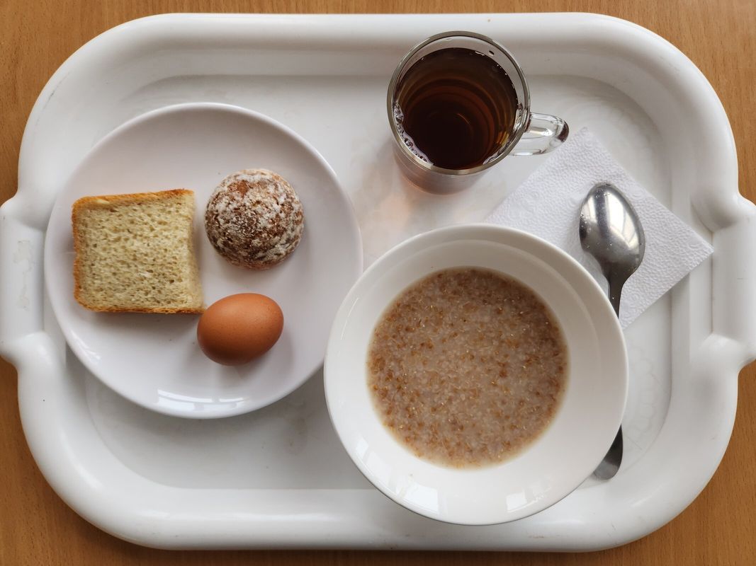 День2 . Каша пшеничная, яйцо вареное, компот из смеси сухофруктов, хлеб пшеничный, кондитерское изделие.