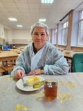 Представитель родительской общественности 2В класса Белова О.А. в рамках реализации программы родительского контроля за организацией горячего питания 21 октября 2025 года посетила школьную столовую. Ольга Александровна сняла пробу завтрака обучающихся. После дегустации она отметила, что меню в школе разнообразное, питание сбалансированное, температура и порции блюд соответствует норме, еда очень вкусная. В столовой чисто и светло.