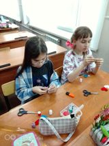 Ребята из 2д, 3б, 3в классов совместно с педагогом-организатором Хасановой Н.И изготовили своими руками 50 талисманов для участников СВО.